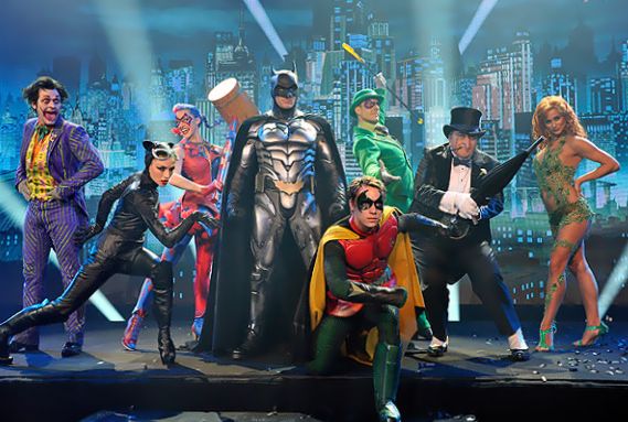 Mas olha só a foto que divulgaram do reality show dos palcos. Segundo o UOL, vai estrear no próximo dia 19 na O2 Arena, em Manchester, o espetáculo Batman Live. "Será um show bem carnavalesco e exagerado com os heróis e seus vários inimigos. Os uniformes parecem os dos filmes de Joel Schumacher nos anos 90. Batman Live tem orçamento de US$ 20 milhões e coloca os heróis lutando contra seus principais inimigos como Coringa, Charada, Pinguim, Mulher-Gato, Hera Venenosa e Arlequina", diz o site. Na apresentação feita para a imprensa na última segunda-feira ainda ficou de fora algumas surpresas como o novo Batmóvel, por exemplo. "O carro tem desgin de Gordon Murray, famoso por seus trabalhos na Fórmula 1. O visual dos personagens foi criado por Es Devlin, o mesmo que faz o visual da Lady Gaga e de seus shows", acrescenta. Depois da Inglaterra, Batman Live segue para outros países europeus e desembarca nos EUA só em 2012. Espero que tenha mais sucesso que o do Spiderman.